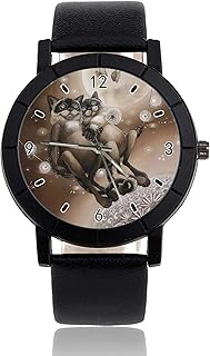 Armbanduhr mit Katzenschwingel-Motiv, personalisierbar, leger, schwarzes Lederband, Armbanduhr für Herren und Damen, Unisex