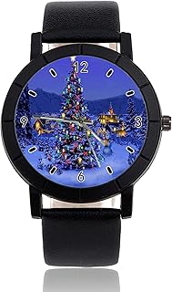 Armbanduhr mit Weihnachtsbaum-Motiv, personalisierbar, leger, schwarzes Lederband, Armbanduhr für Herren und Damen, Unisex