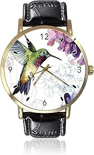 Wasserfarben-Kolibri-Armbanduhr mit Blumen für Damen und Herren, modische Unisex-Armbanduhr aus Leder