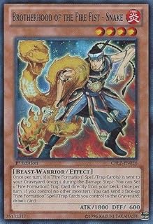 Yu-Gi-Oh! is a strategic trading card game in which two players Duel each other using a variety of Monster, Spell, and Trap Cards to defeat their opponent's monsters and be the first to drop the other's Life Points to 0. Card Name: Brotherhood of the Fire Fist - Hawk Card Type: Effect Monster Card Number: CBLZ-EN021 Set: Cosmo Blazer Yu-Gi-Oh! - Brotherhood of The Fire Fist - Ram - FIGA-EN011 - Secret Rare - 1st Edition - Fists of The Gadgets 27 12 offers from $0.25 Product information Warranty & Support Product Warranty: For warranty information about this product, please click here Feedback Would you like to tell us about a lower price? Product Description