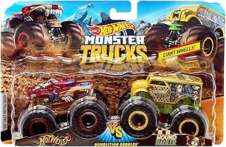 Hot Wheels 1:64 Demo Doubles Monster Trucks Hotweiler vs. Hound Hauler Giant Wheels