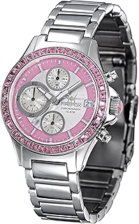 FFS177-190 rosa Damenuhr Edelstahl Chronograph Zirkoniasteine massiv Edelstahl Sicherheitsfaltschließe 10 ATM Prüfdruck