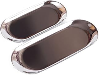 e-meoly Serviertablett Ellipse Tablett Edelstahl Summit Serviertablett Storage Disk Fruit Schmuck Tray Organizer, 2 Pack silber
