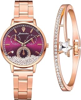 Damenuhr Roségold Uhr Minimalistisch Damen Armbanduhr Paar Uhren Elegant Wasserdicht Armbanduhr Lässige Uhren für Frauen Mädchen Ultradünne Set mit Armreif