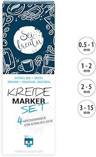SKULLPAPER® Kreidemarker Set Weiss 0,5-1mm, 1-2mm, 2-5mm, 3-15mm / Flüssigkreide Stifte 4 Stück/Chalk Pens/Kreidestifte für Fenster, Glas, Tafel-Folie/abwischbar