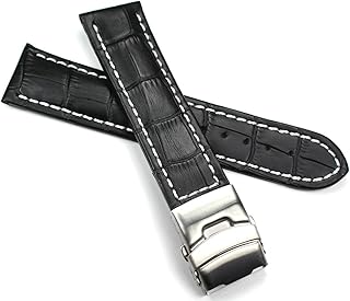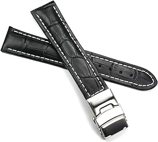 Sulla 24mm Genuine Leder Uhrenarmband mit Edelstahl Faltschließe schwarz weiße Naht Krokoprägung