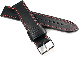 Sulla 20mm Genuine Leder Uhrenarmband mit Edelstahl Faltschließe schwarz rote Naht