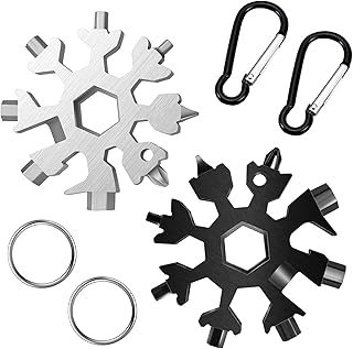 18 in 1 Edelstahl Schneeflocke Multi Tool, Johiux Schneeflocke Multi-Tool Geschenke für Männer, Gadgets Für Outdoor Adventure Tool Schlüsselbund Reise Camping. (2, Silber + Schwarz)