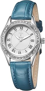Damen-Armbanduhr Quarz Blau – Luxuriöse Armbanduhr für Damen, marineblaues Lederband, silberfarbene Kristalle, Analog-Anzeige, Stil Y1602