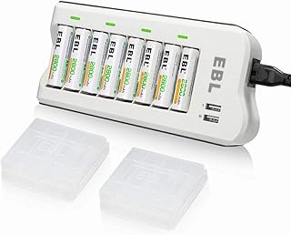 EBL Akku ladegerät inkl. 8X AA 2800mAh mit 2 USB Prot Akkus ladegerät für AA, AAA, NI-MH Akku Universal batterien Ladegerät 8-Fach Multi Batterie Ladegerät