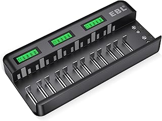 EBL 12+2 Bay Akku Ladegerät-Schnell Batterie ladegerät-für AA/AAA/C/D NI-MH/NI-CD Akku & 9V NiMH/NI-CD/Li-ion Akku automatische Erkennung & Abschaltung, LCD Anzeige Batterienladegerät