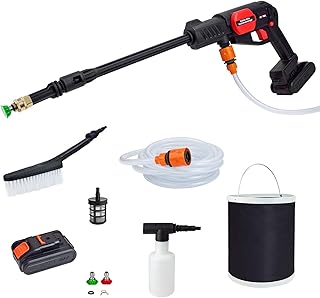 24V Mobiler Akku Hochdruckreiniger 30 bar mit Lanze, Akku, Ladegerät, Bürste, Wassereimer, Schaumdüse, Schlauch Hochdruckreinger, Akku und Schnell- Ladegerät