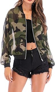 Damen Reißverschluss Camouflage Langarm Jacken Mantel Herbst Winter Kurze Jacke Outwear mit Taschen Frauen Retro Casual Baseball Militär Camo Bomberjacke Bikerjacke Übergangsjacke Tunika Tops