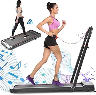 Laufband Klappbar, Laufband für Zuhause & Büro, Elektrisches Laufband mit Fernbedienung Bluetooth-Lautsprecher und LED Display, 2,0 PS Leistung, 1-12 km/h, 120×40cm Lauffläche, bis 110 kg Belastbar