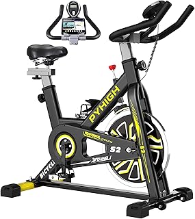 PYHIGH Heimtrainer für den Innenbereich, bequemes Sitzkissen, iPad-Halterung mit LCD-Monitor für Zuhause, Cardio-Workout-Bike