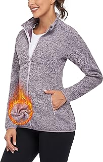 Soneven Fleecejacke Damen, Strickfleecejacke Damen mit Durchgehendem Reißverschluss Fleecejacke Langärmlig Fleece Jacke Sweatjacke Warm Winter für Wandern Outdoor Running