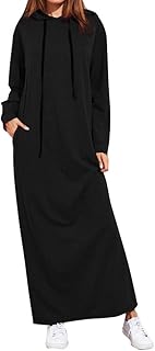 L9WEI Kleid Langarm Damen Tunikakleid mit Kapuze Lose Lange T-Shirt Kleid mit Tasche Casual Knielang Kleid Frauen Lose Gemütlich Kleider Frauenkleidung