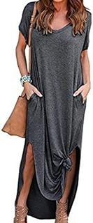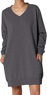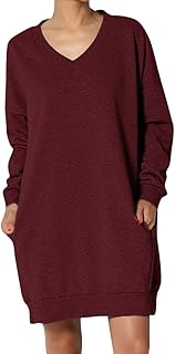 Dresswel Damen Sweatshirt Kleid V-Ausschnitt Langarm Pullover Kleider Einfarbig Sweatkleid Lang T-Shirt Kleid mit Taschen