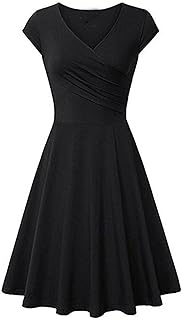 Schwarz/Grün/Grau/Weiß Damen Vintage Rockabilly Kleid Knielang Retro Kleider Faltenrock Einfarbig Swing Kleider Cocktailkleider 50er Kleid Partykleid Sommerkleid V-Ausschnitt Midilang