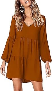 Mini Kleid Damen Sommer Einfarbig Elegant Freizeitkleider V-Ausschnitt Laterne Strand Kleid Kurz Casual Loose Flowy Swing Abendkleid