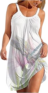 Sommerkleid Damen ärmellos Lose Tank Tops Dress Elegant Kleid Casual Boho Blumen Strand Kleider Swing Freizeitkleid