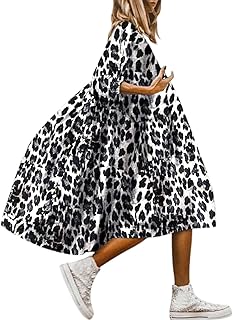 Kleider Damen Sommer, Lockeres Lässiges Rundhals Swing Kleid Kurzarm Druckkleider A Line Sommerkleid Damen Urlaub Kleider Elegante Strandkleider
